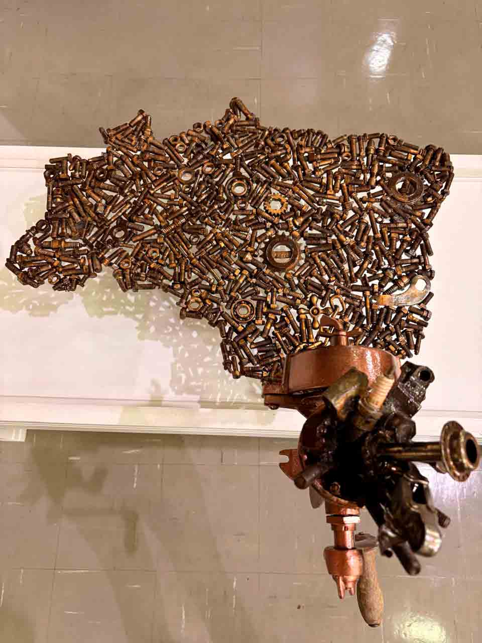 A trajetória de Zakeu também é marcada por reinvenção. Natural do Gama e com passagem pela Cidade Ocidental, onde foi vereador entre 2001 e 2004, ele encontrou na experiência como serralheiro o caminho para desenvolver uma linguagem artística própria. A prática com móveis de metal abriu espaço para as primeiras experimentações com sucata, que aos poucos passaram a ocupar o centro de sua produção.